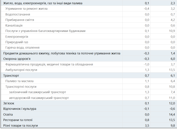 Розцінки на транспорт збільшились на 0,7% переважно через здорожчання проїзду у залізничному пасажирському транспорті на 1,3% і пального та мастильних матеріалів на 1,1%.