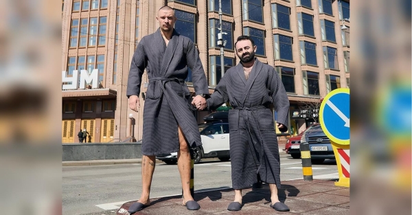 Український актор, зірка фільмів «Спіймати Кайдаша», «Чорний ворон» Тарас Цимбалюк, який нещодавно здивував зізнанням, спантеличив своїх шанувальників. Він опублікував в інстаграмі дивне фото, на якому позує з колегою Арамом Арзуманяном («Скажені сусіди») в середмісті Києва. Актори прогулюються по Хрещатику в халатах та капцях.