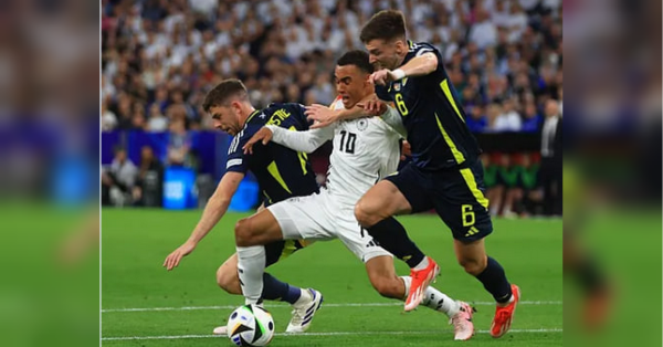 Триразові чемпіони Європи та чотириразові чемпіони світу німці, граючи цілий тайм у більшості, здобули першу перемогу на турнірі завдяки голам найкращого гравця сезону в бундеслізі Вірца з «Байєра», Мусіали з «Баварії» (наймолодші автори м’ячів збірної Німеччини на ЧЄ, котрі забили в 21 рік і 42 дні, а також у 21 рік і 109 днів відповідно), а ще влучному удару з пенальті Хаверца з «Арсенала» та результативним «пострілам» Фюллькруга і Емре Джана з дортмундської «Боруссії».