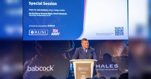 Валерій Залужний, який на початку липня розпочав виконувати обов’язки посла у Великобританії, взяв участь у RUSI Land Warfare Conference 2024 у Лондоні.