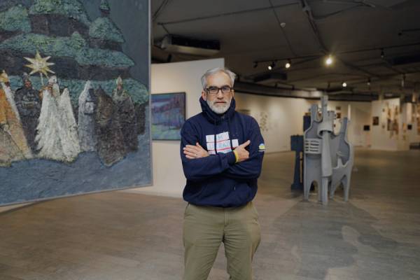 «Це його новий проєкт. Тут є 4 шопки і вертеп всесвіту. Зараз світ для нього виглядає саме так, і він тут розмірковує над тим, чи буде у нас після всього того, що ми робимо з нашою землею, світло чи нове народження у майбутньому. Адже шопка – це про народження», – пояснює Анна Хома.