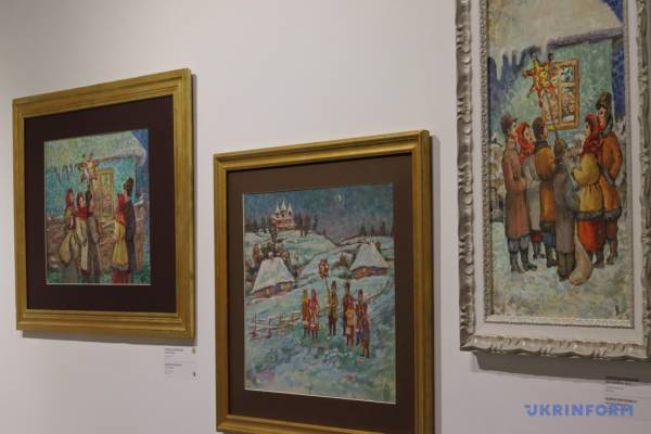 Поруч – полотна із відтворенням святкування Різдва в українському селі.