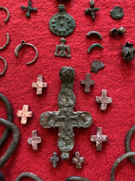 "Крім широкого розмаїття археологічних знахідок, у схованці археологічного об’єкта № CLXXXVII (187) було відкрито надзвичайний скарб. "Скарб купця" налічує 573 цілі давньоруські скляні браслети, значний хрест-енколпіон (одяг священнослужителя високого рангу), 9 бронзових та 8 мармурових невеликих натільних хрестиків, 18 ромбічних застібок, декорованих псевдозерню, 5 срібних скроневих кілець, свинцеву накладку у формі стилізованого під тризуб сокола, щитковий срібний перстень, бронзовий кистень, пломби із сонячним знаком у колі "дорогочинського типу" та низку інших предметів і їх частин", – зазначено у повідомленні.