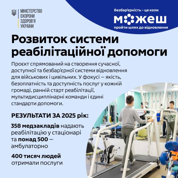 У 2025 році безоплатну реабілітацію отримали понад 435 тисяч пацієнтів і пацієнток з усієї країни.