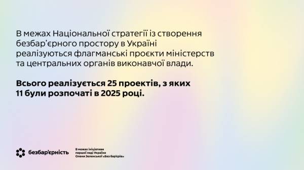 В рамках реалізації Національної стратегії безперешкодного простору, у руслі ініціативи першої леді України Олени Зеленської «Без бар’єрів», кампанія поєднала ключові ініціативи міністерств, фахівців, медіа та суспільства. Загалом впроваджується 25 ініціатив, з яких 11 стартували у 2025 році.