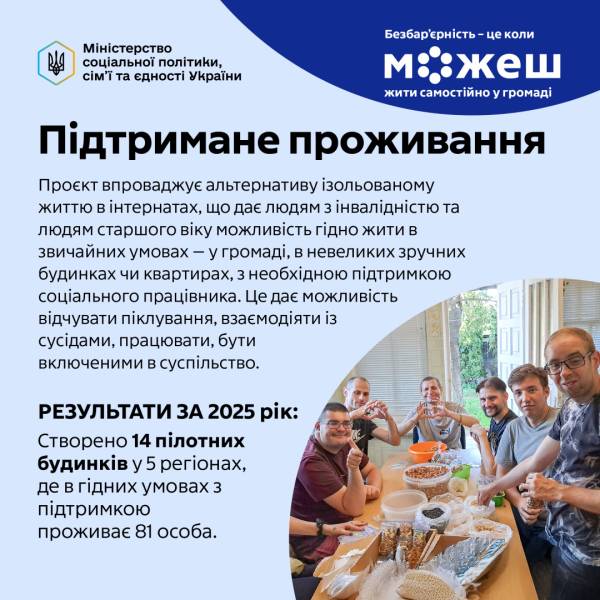 Розвиток підтриманого проживання запобігає потраплянню людей до інтернатних закладів і відповідає курсу на деінституціоналізацію та європейські зобов’язання України.