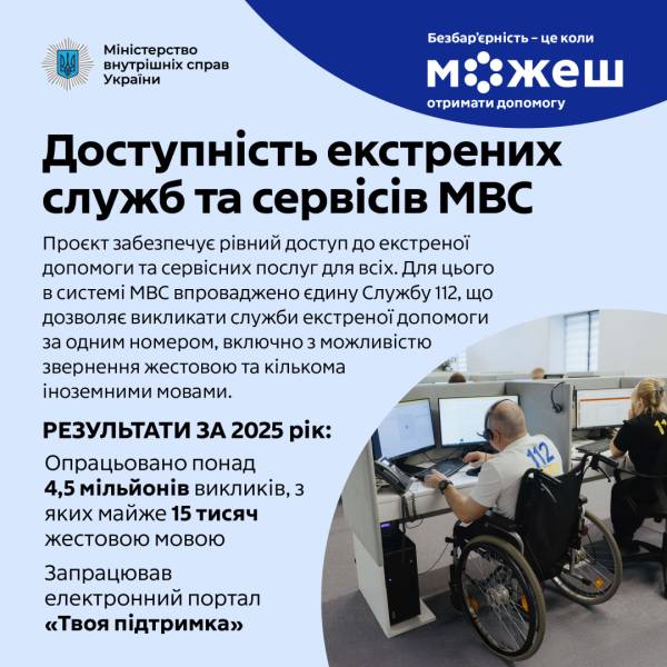 «Доступність екстрених служб та сервісних послуг МВС» – ще один головний проєкт Міністерства внутрішніх справ України, який формує систему допомоги без перепон. Його головна мета – зробити екстрені служби й сервіси МВС однаково доступними для всіх.
