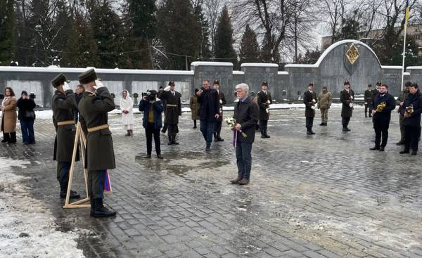 У товаристві міського голови Львова Андрія Садового та інших представників він також відвідав поминальну церемонію на Личаківському цвинтарі, де віддав шану пам'яті полеглих українських бійців.
