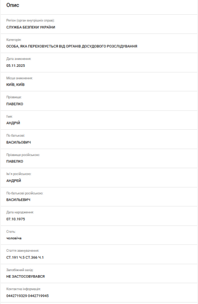 Вказується, що Павелко належить до категорії осіб, котрі переховуються від органів досудового слідства.