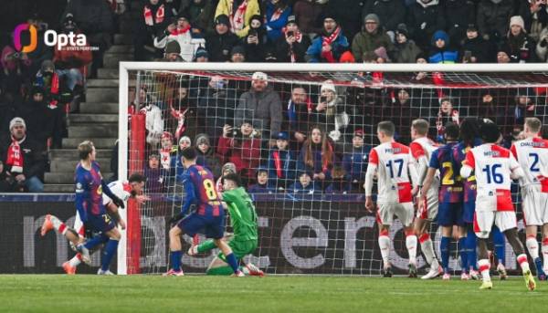 На світлині: "Славія" – "Барселона" (x.com/OptaJose).