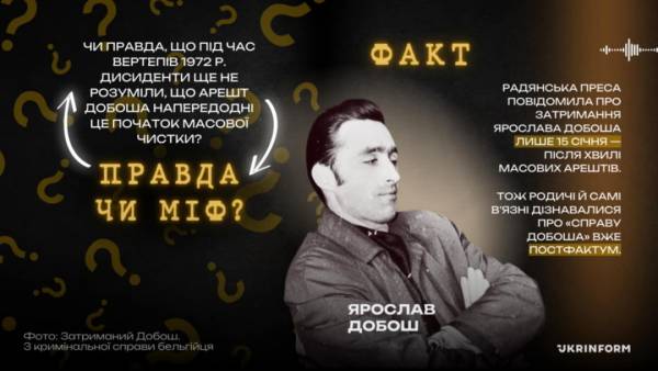 Ось як коментують в УІНП: Інформація про затримання Ярослава Добоша була надрукована в радянських газетах  після основної хвилі арештів, починаючи з 15 січня 1972 р. Отже, родичі репресованих дізнавалися про «справу Добоша» вже після факту, протягом наступних кількох днів після арешту їхніх рідних, а ув’язнені – вже перебуваючи в місцях безпосереднього ув’язнення.