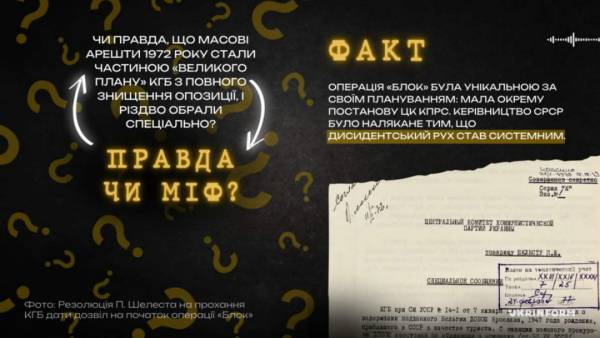 Чи правда, що масові арешти 1972 року не були низкою випадкових «справ», а стали кульмінацією «великого плану» КДБ — операції «Блок», спрямованої на повне придушення українського опозиційного середовища і розпочалася на Різдво невипадково?