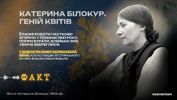 Світ запам’ятав Катерину Білокур як генія квітів, але ці квіти часто мали гіркий присмак історичних трагедій. У 1941 році Київський художній музей, де експонувалися її перші роботи, був знищений полум’ям. Близько одинадцяти, а за деякими даними до двадцяти п’яти найкращих ранніх полотен, які вона ніжно називала своїми дітьми, було втрачено назавжди.