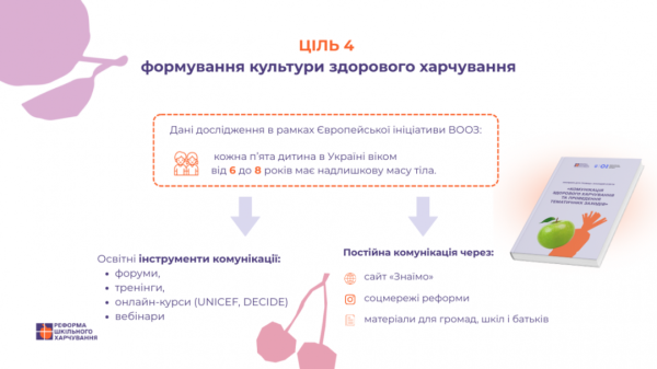 Окрім того, у 2025 році було створено оперативний план заходів з упровадження Стратегії реформування системи шкільного харчування на наступні роки. Документ визначає чіткі інструменти для формування дієвої системи якісного харчування, розвитку культури здорового харчування, оновлення матеріально-технічної бази закладів освіти, підтримки родин із дітьми та стимулювання місцевого економічного розвитку.