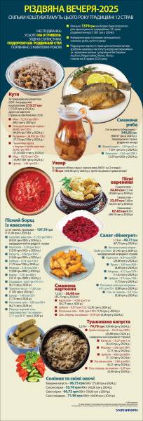 Різдвяна вечеря-2025 22.12.2025 11:55 Укрінформ У яку суму обійдуться цьогоріч звичні 12 наїдків