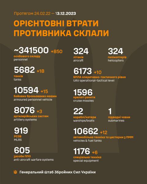 Ми зібрали для вас інформацію про шістсот п’ятдесят восьмий день Великої війни: чим жили Україна та українці 13 грудня 2023 року.