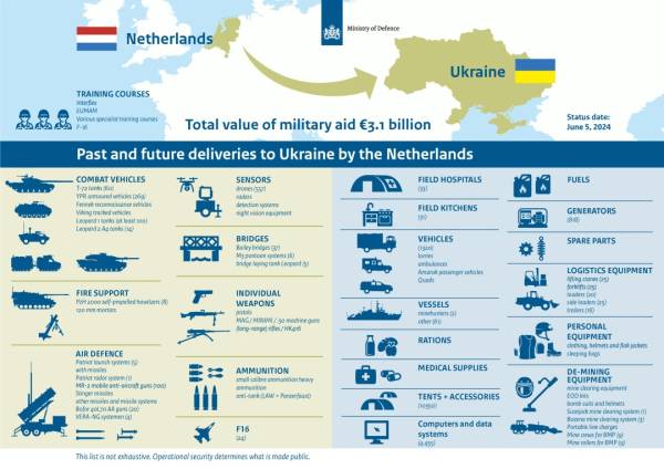 “Загальний обсяг військової допомоги, яку Нідерланди надали Україні на сьогодні, перевищила €3 мільярди”, – йдеться у повідомленні.