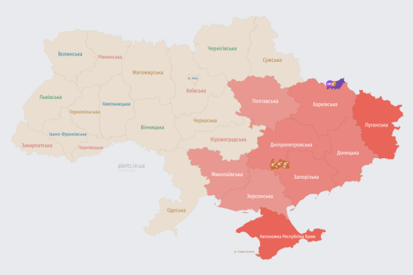 Про це повідомляє Укрінформ із посиланням на Повітряні сили ЗСУ та мапу повітряних тривог.