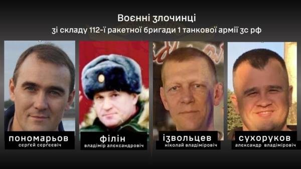 Серед ідентифікованих злочинців – командир бригади полковник Сергій Пономарьов, заступник командира бригади підполковник Володимир Філін, заступник командира бригади з озброєння підполковник Микола Ізвольцев, заступник командира бригади з тилу підполковник Олександр Сухоруков, заступник начальника штабу по службі військ майор В’ячеслав Осокін, начальник автомобільної служби майор Роман Івшин, начальник інженерної служби майор Сергій Тіхоміров, начальник оперативного відділу майор Володимир Юдін, командири дивізіону Ілля Лобачов, Сергій Обрєзков, Микола Чікунов, Олексій Авєркін.