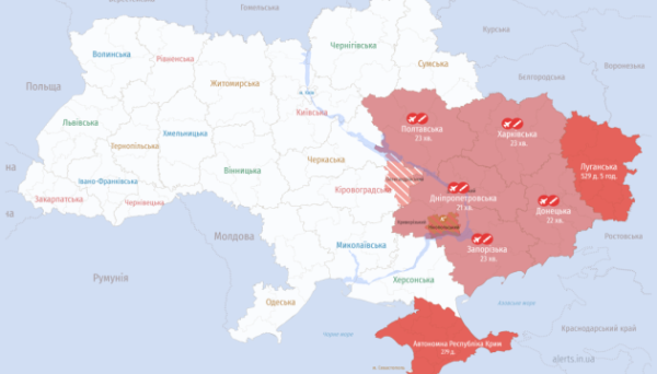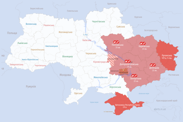 Про це передає Укрінформ із посиланням на Повітряні сили ЗСУ та мапу повітряних тривог.
