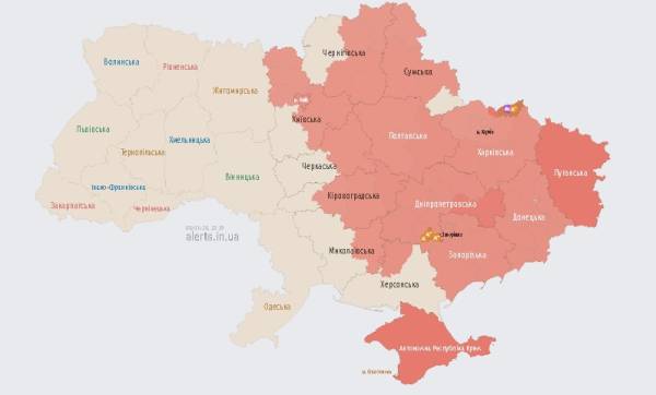 Попередження про повітряну небезпеку оголошено в кількох областях України.