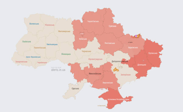 Поточна карта повітряних тривог по Україні на 03:09 / Джерело: https://alerts.in.ua/