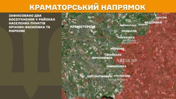 На Краматорському напрямку зафіксовано два бойових зіткнення в районах Оріхово-Василівки й Маркового.