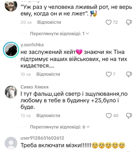 Українська виконавиця Тіна Кароль відреагувала на відгуки користувачів соцмереж після викладення уривка її нової пісні, в якій йшлося про відсутність світла та тепла. Відеоролик спричинив жваве обговорення – одні сприйняли його як прагнення додати оптимізму, інші вважали слова недоречними в умовах дійсних складнощів. Про це інформує УНН з посиланням на сторінку вокалістки в Instagram.