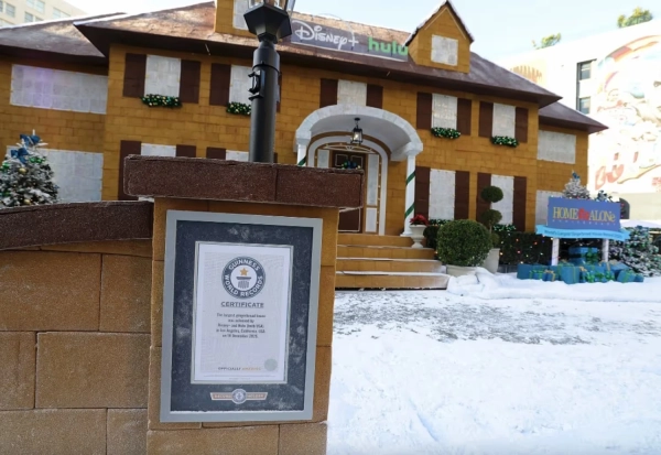 У Лос-Анджелесі з’явилася понад семиметрова імбирна копія оселі з кінострічки “Сам удома”, що потрапила до Книги рекордів Гіннеса. Їстівна споруда, що сягає 17,5 м в довжину, 12,5 м в ширину та 7,7 м у висоту, була зведена Disney+ та Hulu на честь 35-річного ювілею картини.
