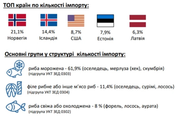 “Серед ключових постачальників традиційно називають Норвегію (зокрема по оселедцю та скумбрії), Ісландію, США (зокрема по минтаю) та інші країни. У структурі споживання топові позиції також залишаються приблизно тими самими з року в рік, що додає ринку інерційності та прогнозованості”, – пояснює для читачів Загуменний.