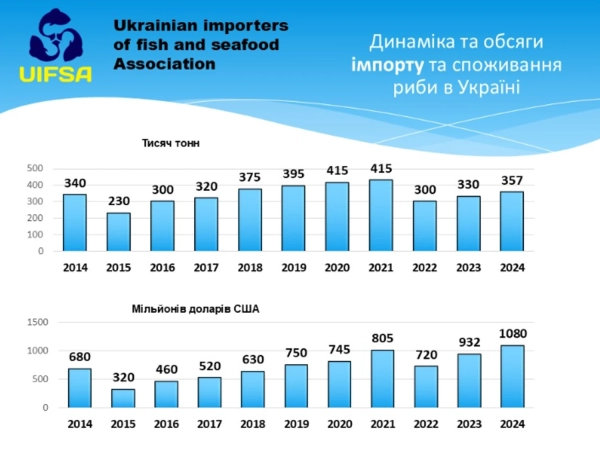 Головний сигнал від ринку полягає в тому, що українці в цілому не відмовилися від риби як продукту. За підсумками 2024 року імпорт становив 357 тис. тонн, а порівняльні показники інших років близькі до цього рівня. У грошовому вираженні спостерігалося збільшення: